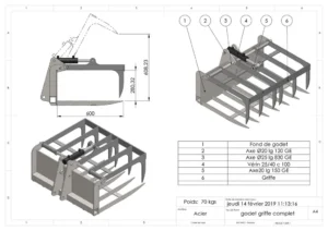 Le godet griffe est un accessoire polyvalent conçu pour les engins de chantier, offrant une solution efficace pour les opérations de manutention, de tri et de défrichage. Ce godet combine une cuve de chargement avec des dents articulées ou griffes, ce qui le rend particulièrement adapté à la saisie et au déplacement de matériaux encombrants tels que bois, pierres, branches, racines ou déchets de chantier.