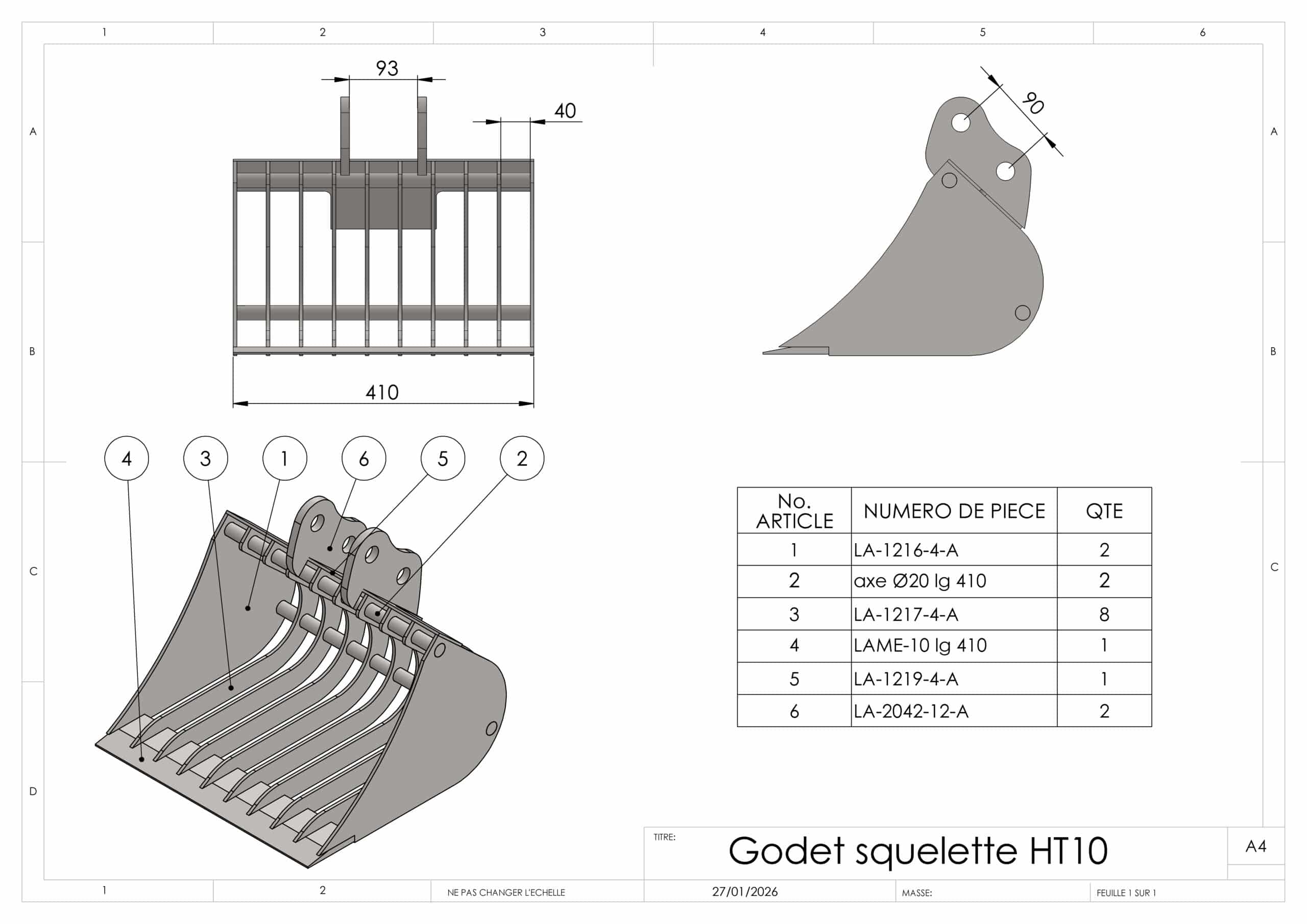 Avec sa largeur de 40 cm, ce godet squelette offre un excellent équilibre entre précision et rendement. Il est parfaitement adapté aux opérations de reprise de sol, de préparation de terrain, d’aménagement paysager ou de remise en état après terrassement. Les espaces entre les barreaux permettent à la terre de s’évacuer naturellement, tout en conservant les éléments plus volumineux dans le godet.